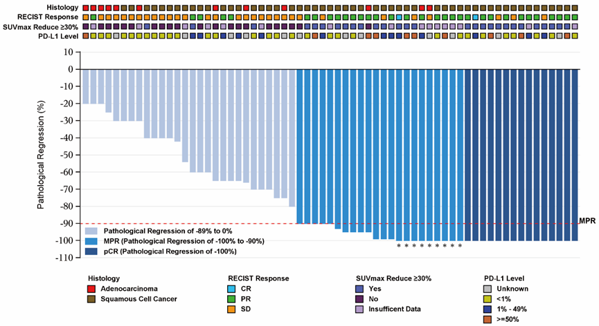 在鳞状细胞癌患者中达到MPR/pCR率高于腺癌患者;